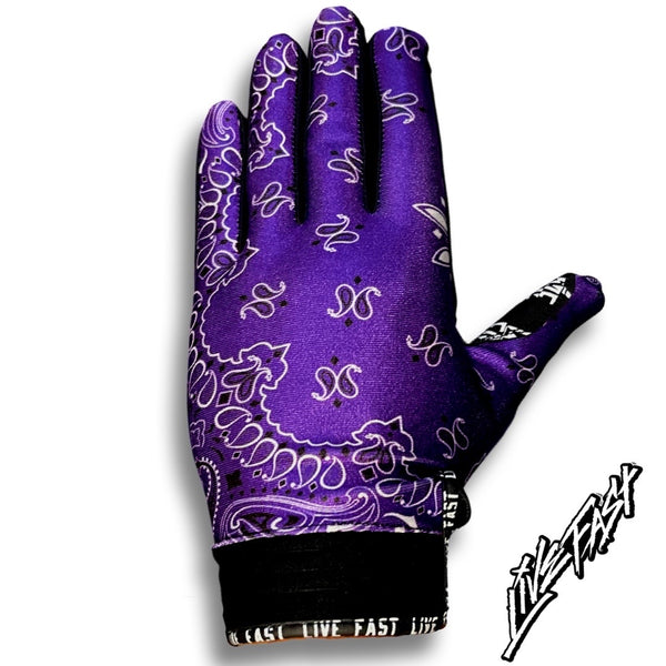 - Bold Purple Bandana Printed gloves. Done through sublimation so they never fade