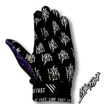 Our Live Fast Motocross gloves are the perfect combination of style and protection. Featuring reinforced stitching, flat velcro, synthetic palms with silicon printing for extra grip, and a super breathable and comfortable design, these gloves are perfect for any rider looking for a stylish and protective glove. The silicon printing provides a secure grip, and the breathable material keeps your hands cool and comfortable. With a bold black and red paisley design, these gloves will turn heads and make you stand out from the crowd. Get ready to hit the Red Line with the boys on a night with Live Fast's Motocross gloves.